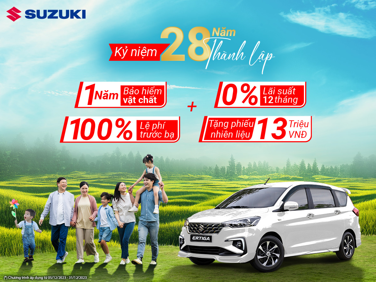 Tháng 12 cũng đánh dấu cột mốc lịch sử 28 năm của thương hiệu Suzuki tại Việt Nam. Thành tích này có được là nhờ sự ủng hộ và tin tưởng từ phía khách hàng dành cho sản phẩm và dịch vụ của Suzuki cùng hệ thống Đại lý trong suốt thời gian qua.